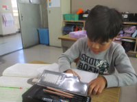 理科の授業の様子です。日光の進み方についての実験をしていました。いろいろな予想を...