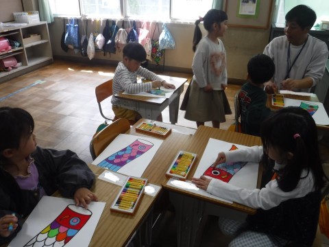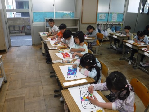 こいのぼりの色塗りをしました。