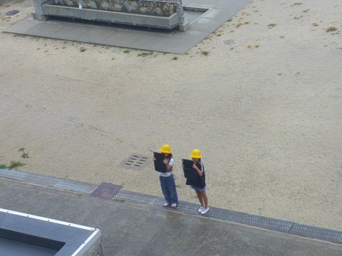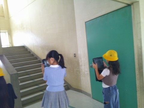 はとぶえの絵に取り組むため,自分の描きたい学校の風景を写真に収めていました。
