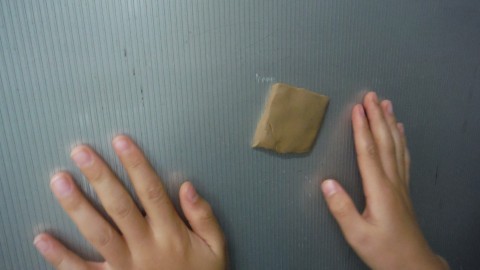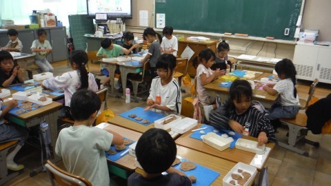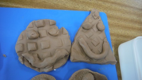 教室や廊下にあるいろんな物のテクスチャーを活用して作品を作っていました。