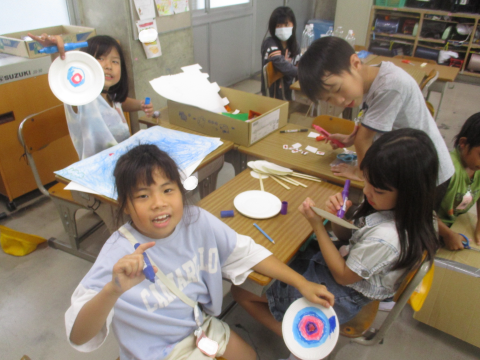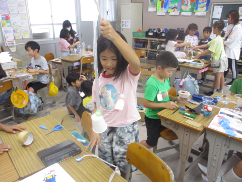 生活のおもちゃ作りの様子です!完成したグループが試しに遊んでいます♬