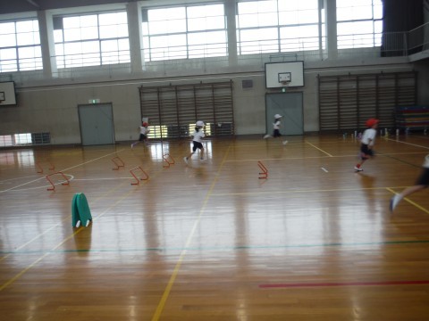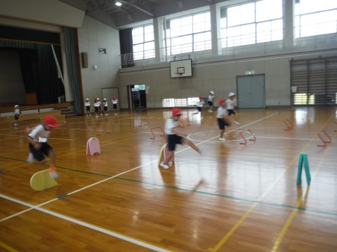 体育「ハードル走につながる運動遊び」の学習です。今日は,この学習が最後だったので,足をあげて走ることと,なるべく速く走ることを意識して取り組みました!!