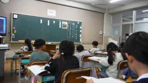 プリントを使って学習を進めています。参観日で緊張したかな?