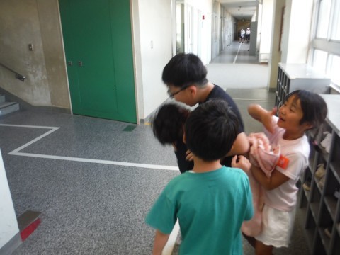 昼休みの様子です。食べ合って!?遊んでいるそうです!!(笑)