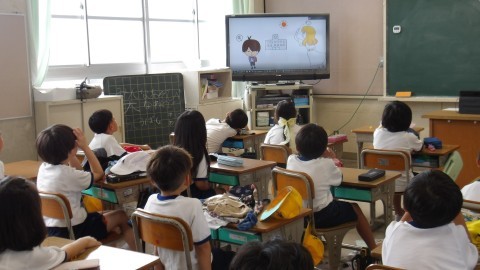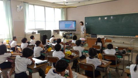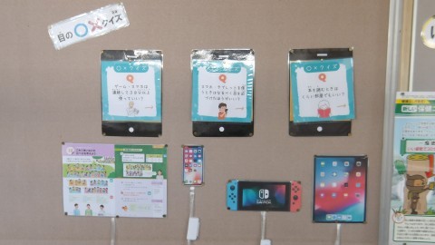 保健室の前の掲示板にも「目の○×クイズ」が掲示されています。