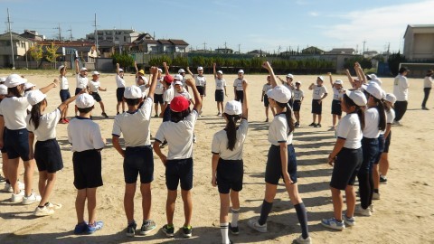 上級生相手ですが,5年生も円陣を組んで気合十分です!