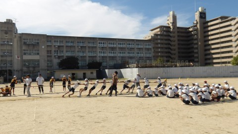 綱引きのあと,ふり返りとして感想を聞くと,