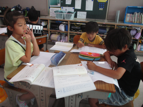 国語では,「紙コップ花火の作り方」で学んだ説明の工夫を使って自分で作ったおもちゃの作り方を説明していきます!今日は,書くためのメモを書きました。「え~どうやったかな~」と思い出す様子がかわいかったです♬