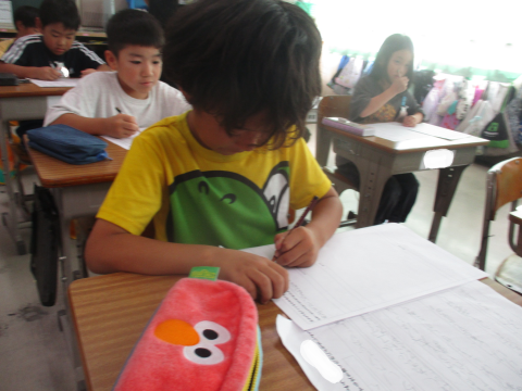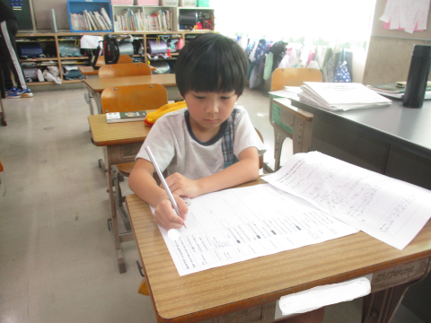 国語の授業の様子です!昨日書いたおもちゃの作り方の説明メモに,これまで見つけた工夫を付けたして文を書きました!みんなスラスラと書けていて,すごかったです☆