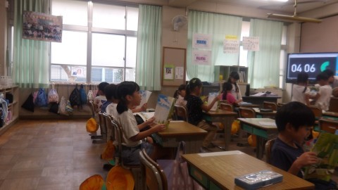 国語の授業「くじらぐも」の音読練習をしていました。