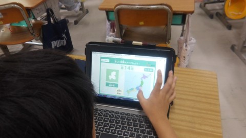 タブレットを使って都道府県の場所を当てる問題をしている子がいました。