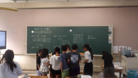 前に集まった子どもたちは,友だちの作った問題を選んでいるようです。