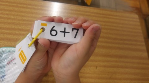 教科書の問題ができた人は計算カードに取り組んでいました。