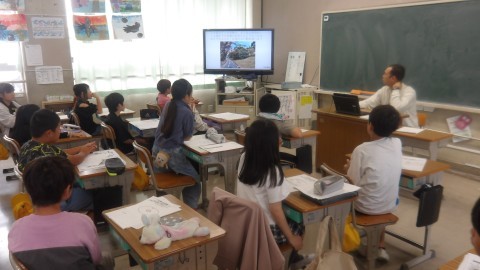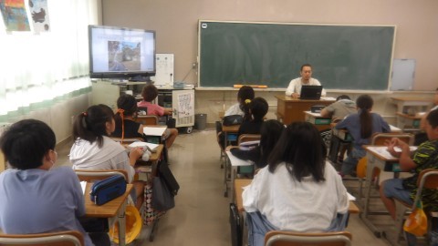 総合の時間です。防災に関連する授業をしています。