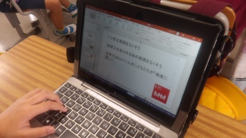 タブレットを使ってスライドを作成しています。