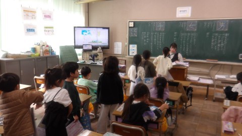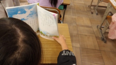 終わった人は「くじらぐも」の範読の音声に合わせて音読の練習をしていました。