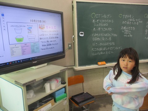 今日の給食の「ちゃんこじる」が分からなかったようで,先生に尋ねにきました♬