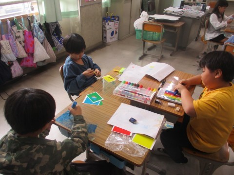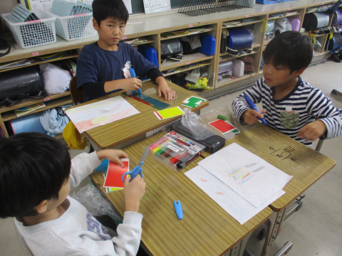 図工では,「光のプレゼント」をしました!ペンとセロハンを組み合わせてステキな世界をつくることができました♬