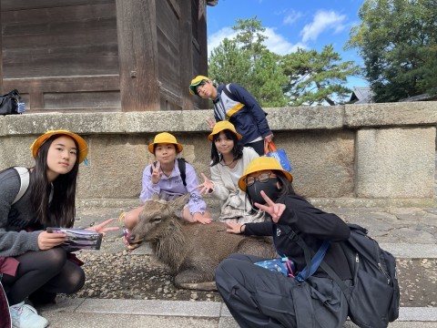 鹿と触れ合ったり、歴史的建造物を見たりと楽しみながら学ぶことができました。