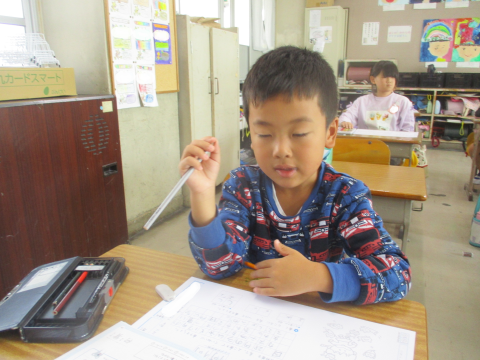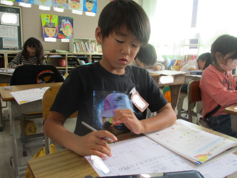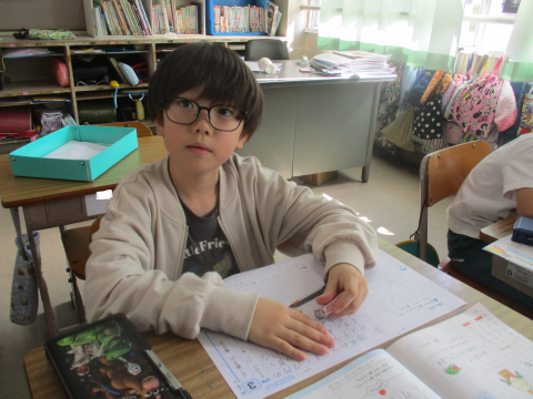 書写の授業の様子です!少し長い文章でしたが,マス目に合わせてしっかりと書くことができました♬