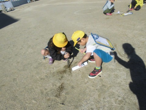 理科で日なたと日かげの地面の温度を測りました。日なたの方が日かげの地面より温度が高かったり、9時と12時でも温度が上がっていたりなど結果に興味を示している子どもたちでした。