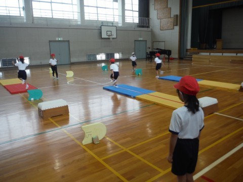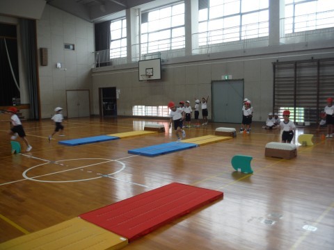 【10月28日(火)の掲載もれ分】 1年2組 公開日 2025/10/29 更新日 2025/10/29 1年生 体育「跳ぶことを楽しもう」の学習です。今日は,自分たちでマットや跳び箱,ビート板の並べる位置を変えて,どうすればはやくゴールできるかを考えました。実際に競争してみて,よかったところや課題点がみつかったようです!次が最後なので,頑張ってほしいです☆ +2