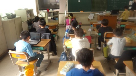算数のプリントを終えた人はタブレットなどをしていました。