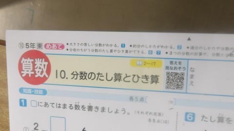 「分数のたし算とひき算」のテストをほぼ終えたところでした。