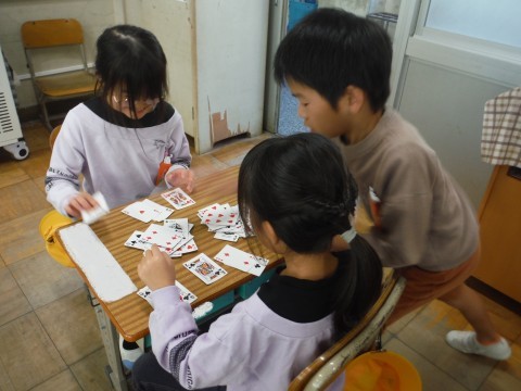 昼休みの様子です。今日は,教室でトランプをしたり,カマキリを見ていたり,運動場で2年生とドッヂボールをしたり,おにごっこをしたりして遊んでいました☆