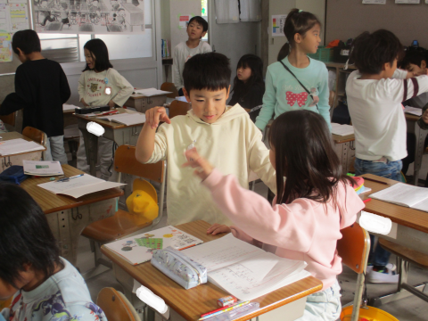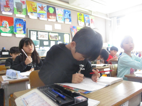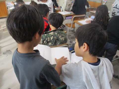4の段の学習風景です!自分で書いた4の段の九九が合っているかの確認をしています♬