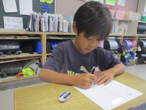 4の段の九九を覚えているようすです!プリントを解いている間にも「四一が四」と小さい声で確認をしていました♬