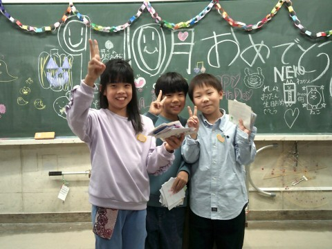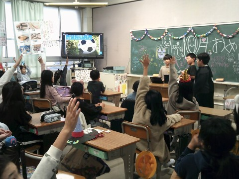 お誕生日の人にお祝いの気持ちが伝わる会にしよう!との目的で国語の学習で学級会を開き,クイズ作りの準備をして今日を迎えました。