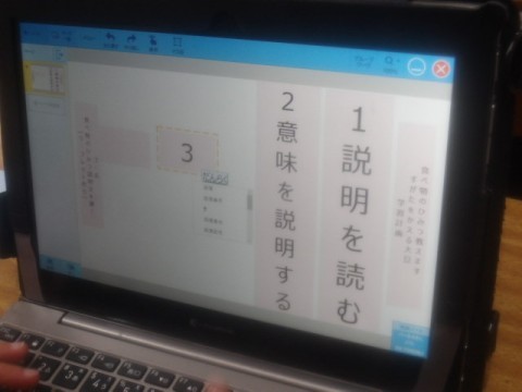 タブレットの発表ノートで学習の進め方を学んでいました。