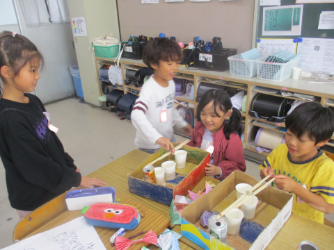 生活のおもちゃ作りはいよいよ完成にきました!今日は,「ルール説明や実際に遊んでみる」ということをしました♬