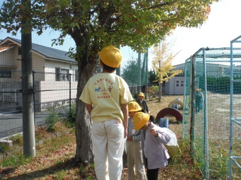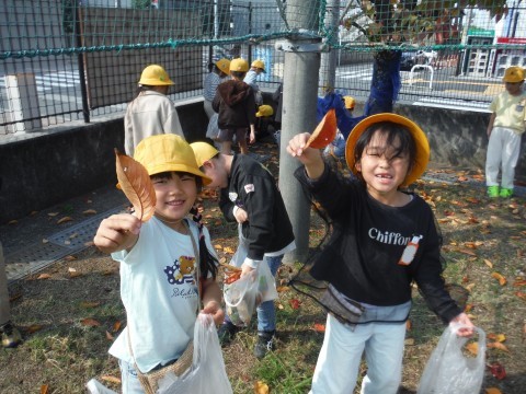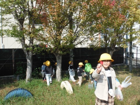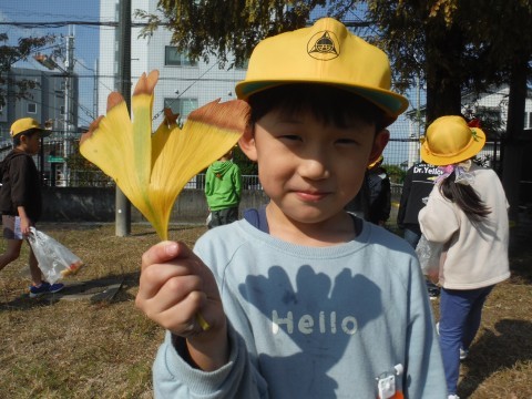 生活「学校秋見つけ」の学習です。今日は2回目で,運動場側の紅葉をメインに秋見つけをしました!カエデやイチョウの木の葉をメインに見ました。色が変わっている様や,いろんな大きさ,形の葉っぱを見つけました。中には穴が開いている葉っぱもあり,顔にみえる葉っぱもありました☆
