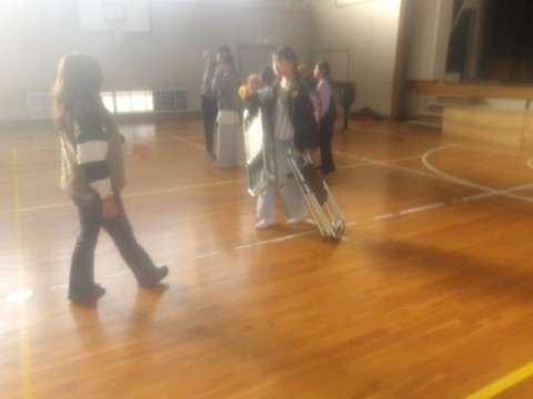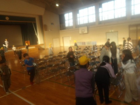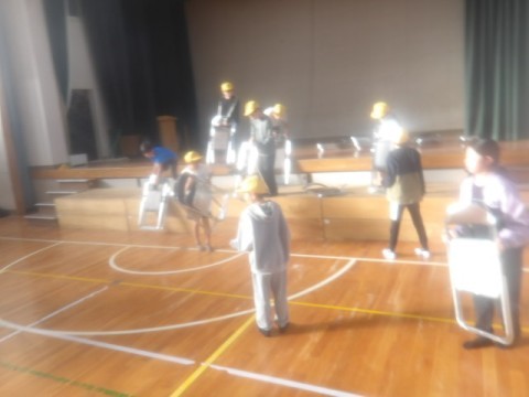 5年生は明日の参観日での発表に向けて,合唱等の練習と会場の設営をがんばっていました。