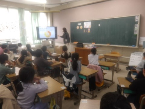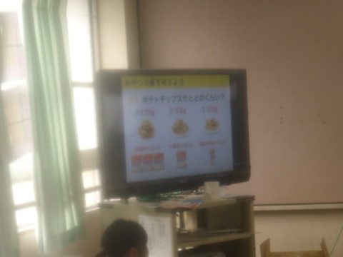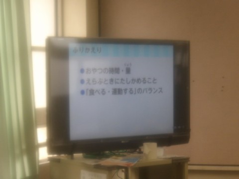 おやつの時間や量,運動とのバランスなどの話や,食べ物と虫歯との関係についてお話しがありました。