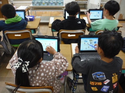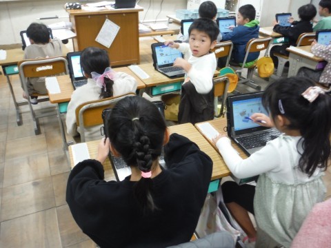 算数「かたちあそび」の学習です。今日は,形のにているところに注目して,仲間分けをしました。「転がる」や,「かくかくしている」など子どもたちなりの言葉で表していました!!