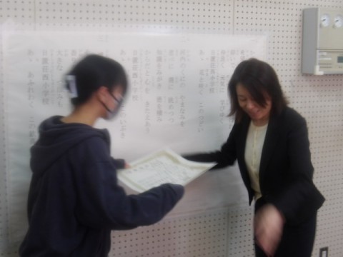 今日は代表児童に校長先生から直接賞状などが渡されました。