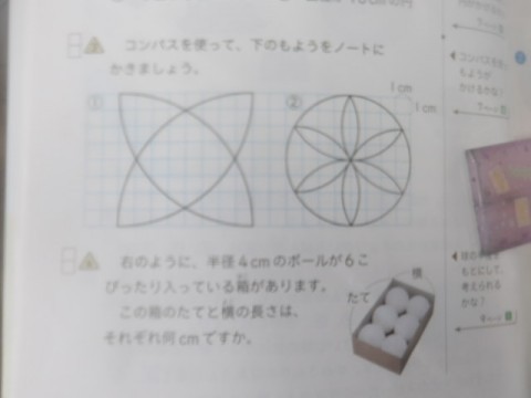 教科書と同じもようをノートに書くのですが,とても難しそうでした。