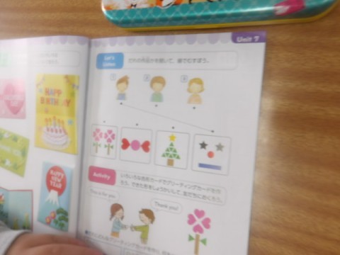 聞いた英語の内容から,誰がどの作品を作ったかを考えています。