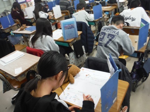 算数の時間です。場合の数のテストをしていました!!集中している様子でした!