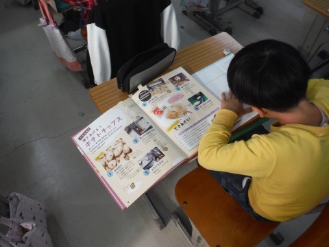 食べ物について調べたことをリーフレットにまとめる学習をしています。