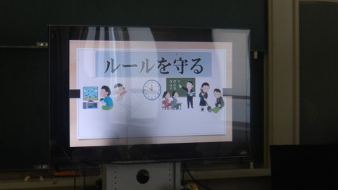 ルールを守ることの意味や大切さなどを,毎日の生活に密着した事例などで説明していただきました。