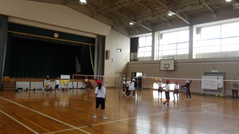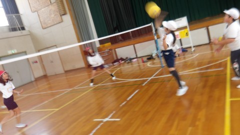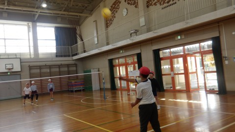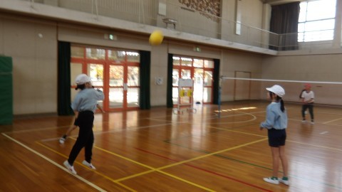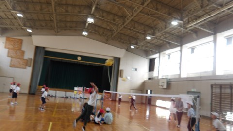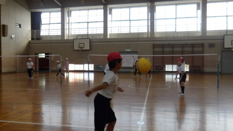 ソフトバレーボールを使ってネット型のボールゲームをしていました。