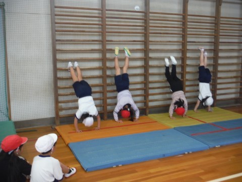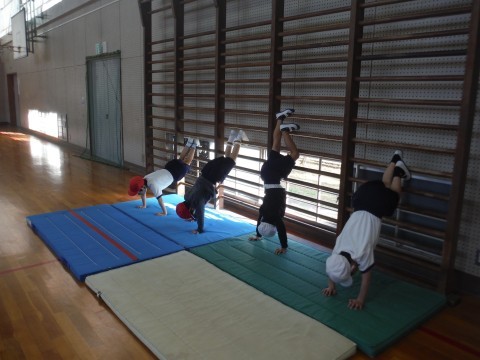 体育「マット運動」の学習です。今日は,最後のマット運動で,発表会をしました。チームで練習をして,協力したり,技の順番を考えながら発表することができました。いろいろな技ができるようになりました!!できなかった技は,2年生でできるようになったらいいなと思います☆