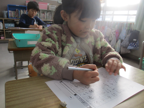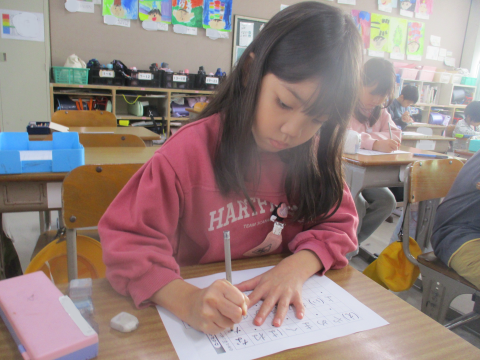 書写の時間の様子です!今日は何回目かのひらがな練習の日でした!始点をかいているので,かなりきれいに書くことができました♪