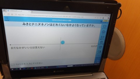 昨日と同じくポジショニングというアプリを使いながら意見の交流をしていました。