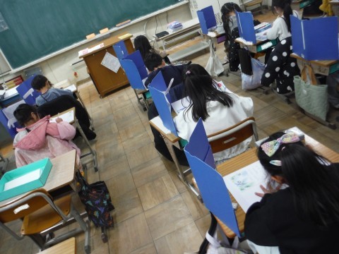 12月5日(金) 1年2組 公開日 2025/12/05 更新日 2025/12/05 1年生 国語の学習の時間です。今日は漢字テストをしました。前回のテストもよく頑張っていましたが,今回も丁寧に文字を書いて集中して取り組んでいたと思います!!