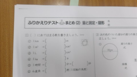 「数量関係」「量と測定・図形」などのまとめのプリントをしていました。